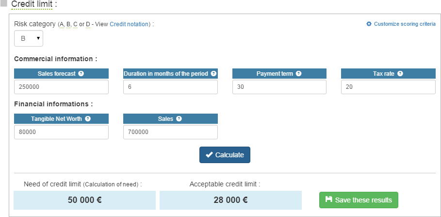 The Sales forecast (outstanding need) is 250 000 euros. the calculated Theorical