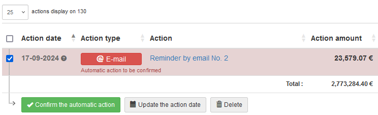 A specific action is often created for a later date. It is possible to make this action automatic in the same manner as the collection scenario action.