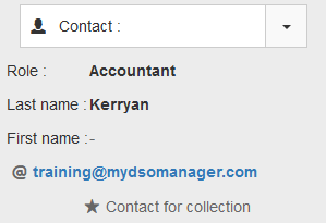 → If this is not the case, My DSO Manager will display an error message for the affected clients. To update them, edit the customer sheet and select the contact that will be the recipient of these dunning actions. It is also possible to set the contact for collection with the contacts upload file.