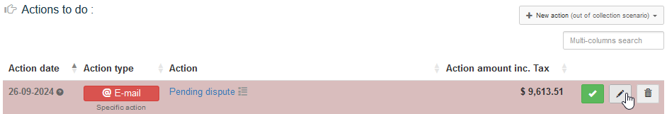 then the action at a later date by editing it in clicking on the pencil, to