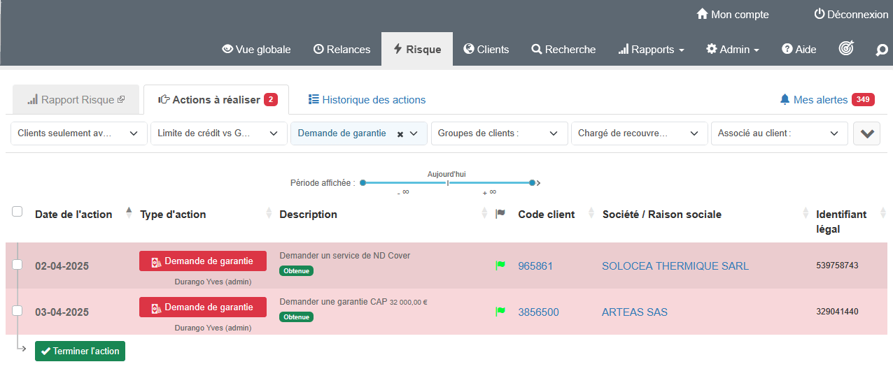 Assurance-crédit : effectuez vos demandes de garanties à partir de My DSO Manager ! Mercredi 26 Mars 2025 par My DSO Manager Les connecteurs assurance-crédit évoluent ! Véritables piliers d'une gestion efficace de votre police d'assurance-crédit, les connecteurs permettent de synchroniser au quotidien les données de l'assurance-crédit (garanties accordées, types de garantie, scores, etc.) avec vos données d'encours, ainsi que tout autre type de donnée externe (informations financières) intégrée à My DSO Manager. L'assurance-crédit est un service permettant de répondre à plusieurs objectifs du credit manager : Effectuer en continu une évaluation du risque crédit sur chacun des clients insérés dans le portefeuille de l'assureur. Les difficultés financières potentielles de l'acheteur sont identifiées en amont, ce qui permet d'anticiper le risque d'impayés. Obtenir une garantie afin d'être indemnisé à hauteur de la quotité garantie en cas d'impayés. Elément clé de ce service, l'indemnisation permet de préserver la rentabilité de son entreprise en obtenant une compensation en cas d'impayé avéré et rentrant dans le cadre des créances garanties. Pour cela, il est indispensable de respecter les clauses contractuelles de la police. Dans le cas contraire (déclaration tardive, mauvaise interprétation des clauses du contrat, etc.), le risque est de ne pas être couvert et de perdre ainsi le droit à être indemnisé. Contribuer à structurer le processus de vente et à définir des règles de gestion des créances basées sur celles de la police d'assurance. Disposer d'un service externalisé de recouvrement de créances. En effet, les assureurs-crédit proposent ce service au titre des créances garanties (suite indemnisation) et non-garanties (lorsque la garantie est nulle). Agissant d'une manière similaire à une société de recouvrement, l'assureur dispose de leviers supplémentaires pour parvenir à ses fins qui sont souvent efficaces. Des connecteurs assurance-crédit bidirectionnels Préalablement conçus pour intégrer de l'information dans My DSO Manager, les connecteurs peuvent être maintenant utilisés pour envoyer de l'information aux assureurs-crédit, augmentant ainsi le niveau d'interaction et d'intégration des processus de gestion de chaque police. Ainsi, une fois le connecteur avec votre assureur-crédit activé, il est possible d'effectuer les demandes de garanties à partir de la fiche client dans My DSO Manager : Étape intermédiaire pour que l'acheteur soit identifié de manière certaine par l'assureur-crédit : Sélection du type de garantie ainsi que du montant souhaité : C'est parti ! La réponse de l'assureur-crédit sera automatiquement intégrée dans le logiciel dans l'Agenda risque. Vers une gestion optimale de l'assurance-crédit Cette évolution ouvre de nouvelles possibilités en plus de celles existantes. En effet, grâce aux fonctionnalités de gestion du risque client disponibles dans le logiciel, un pilotage optimal et en temps réel de l'assurance-crédit peut être mis en place sur l'ensemble de ses aspects : Suivi du risque réel (encours de créances - garanties) et du risque potentiel (encours de créances + portefeuille de commandes - garanties) en temps réel dans le rapport risque. Alertes en cas de dépassement ou en cas de risque d'état de manquement ou de forclusion. Workflow de validation des limites de crédit dès lors qu'elles dépassent le montant de garantie et revues de limites de crédit. Actions de suivi automatiques et manuelles dans l'agenda risque. Utilisation des données d'assurance-crédit pour du paramétrage intelligent via Search & Assign. Rapports personnalisés pour les déclarations de Chiffre d'Affaires auprès de l'assureur-crédit. Gestion des garanties des clients non-dénommés et des limites discrétionnaires (DCL). Echanges avec le courtier notamment pour les demandes d'insistances. Etc.Grâce à l'IA Search & Assign, il est possible d'identifier automatiquement, et selon vos critères, tous les clients pour lesquels une nouvelle demande de garantie doit être effectuée, ou les sinistres qui doivent être déclarés en conformité avec les conditions de votre contrat. Ainsi, My DSO Manager permet une gestion intégrée et optimale de l'assurance-crédit, que ce soit pour déclarer des sinistres en temps et en heure, gérer les différents types de garanties, effectuer les demandes de garanties, et toutes les opérations permettant d'associer gestion du contrat d'assurance-crédit et pilotage efficace du poste client de votre entreprise.La réponse de l'assureur est négative ? Effectuez une insistance à partir de l'onglet "Dossier crédit & risque" de la fiche client avec un e-mail généré automatiquement en fonction de vos préférences, et complété avec les informations que vous souhaitez transférer pour argumenter votre demande, tels que vos commentaires d'analyse crédit, ou des information en provenance de votre fournisseur d'informations financières. Cet e-mail est historisé, ce qui permet une traçabilité de l'ensemble des insistances effectuées. Une question sur l'assurance-crédit ? Interrogez MAIA ou consultez notre rubrique d'aide en ligne sur l'assurance-crédit.