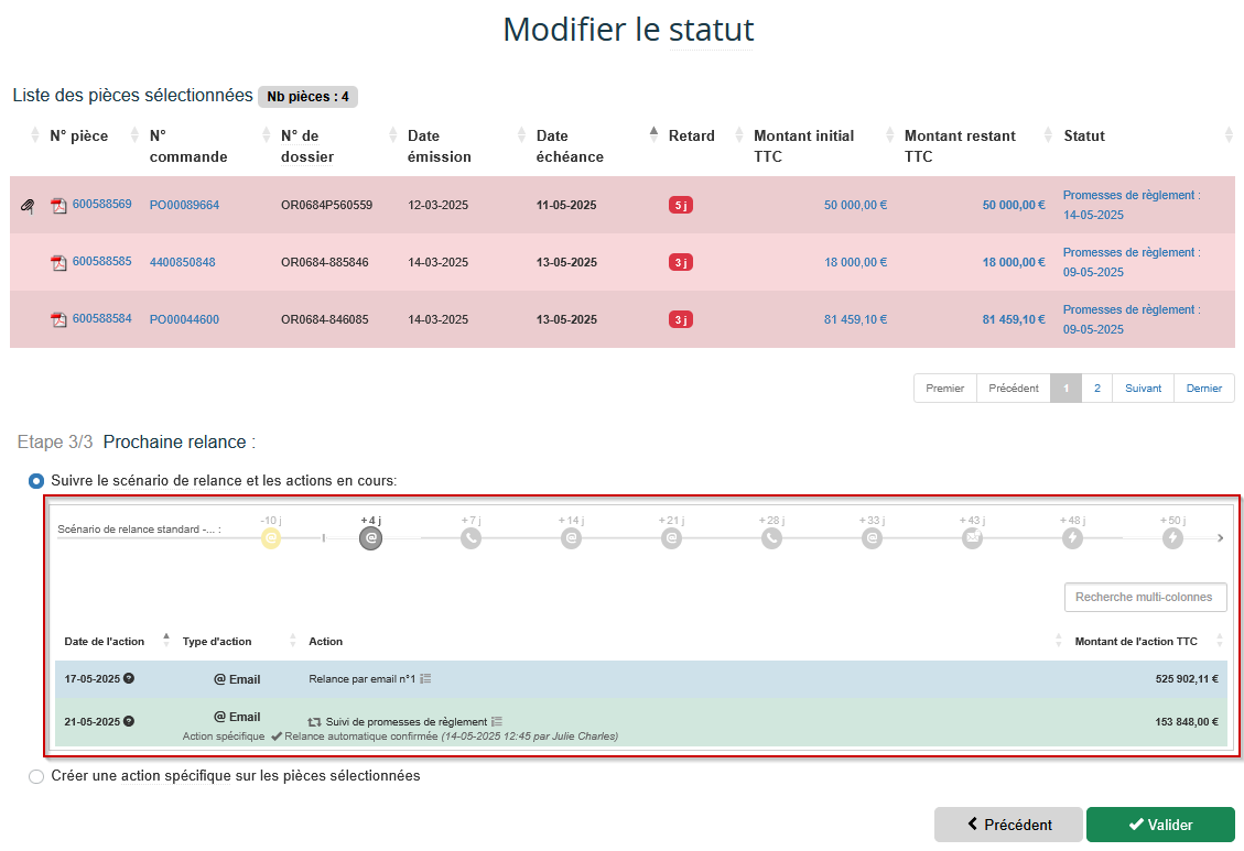 Découvrez les dernières évolutions avant l'arrivée de MAIA Feedbacks ! Mercredi 21 Mai 2025 par My DSO Manager Bonjour à toutes et à tous, Nous espérons que vous allez bien et que vous continuez à tirer pleinement parti de My DSO Manager, avec toujours autant d'efficacité et de satisfaction. Plusieurs évolutions majeures sont actuellement en préparation et seront déployées dans les prochaines semaines sur vos plateformes. En attendant, nous vous invitons à découvrir ci-dessous les dernières améliorations fonctionnelles et ergonomiques, déjà en cours d'activation progressive pour l'ensemble de nos utilisateurs. Ajout du filtre "Chargé de résolution" dans les Rapports Balance âgée, Évolution des retards et Efficacité recouvrement Ces filtres permettent, en quelques clics, d'identifier la part des litiges gérés par un(e) chargé(e) de résolution dans les retards de paiement. Leur combinaison avec l'ensemble des critères disponibles offre une lecture fine et ciblée des situations à analyser. Qualification des pièces Étape 3 Seules l'action de scénario et les actions spécifiques rattachées aux pièces sélectionnées apparaissent à ce stade, au lieu de l'ensemble des actions spécifiques du compte client auparavant. Cette évolution est particulièrement utile pour les comptes à forte volumétrie, où de nombreuses actions peuvent être en cours. Elle améliore considérablement la lisibilité et facilite le suivi des situations. États de comptes clients et recherches piècesUne nouvelle colonne, la date de statut, a été ajoutée afin de pouvoir trier et filtrer facilement sur ces valeurs : Demandes de garanties avec Allianz TradeL'ensemble des utilisateurs d'Allianz Trade pour l'assurace-crédit peuvent effectuer leurs demandes de garanties via My DSO Manager, et obtenir les réponses dans l'Agenda risque My DSO Manager gère également parfaitement les non-dénomés induits par la Grade Policy Cover d'Allianz Trade. Les mêmes fonctionnalités sont disponibles ou en cours de développement avec Coface et Atradius. Actions spécifiquesLes actions spécifiques dont le montant (la somme des pièces concernées par l'action) est de zéro sont maintenant bien affichées. N'hésitez pas à nous faire part de vos retours, qui contribuent fortement aux évolutions apportées à votre logiciel de credit management My DSO Manager.