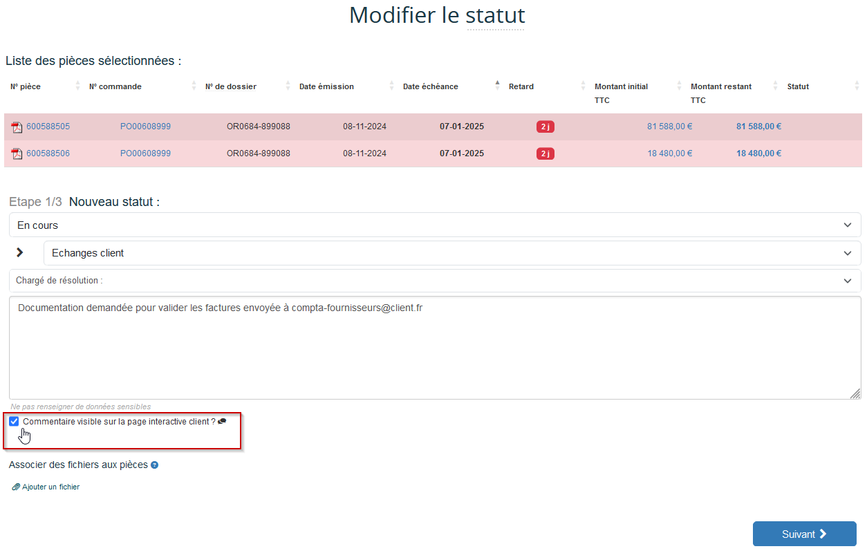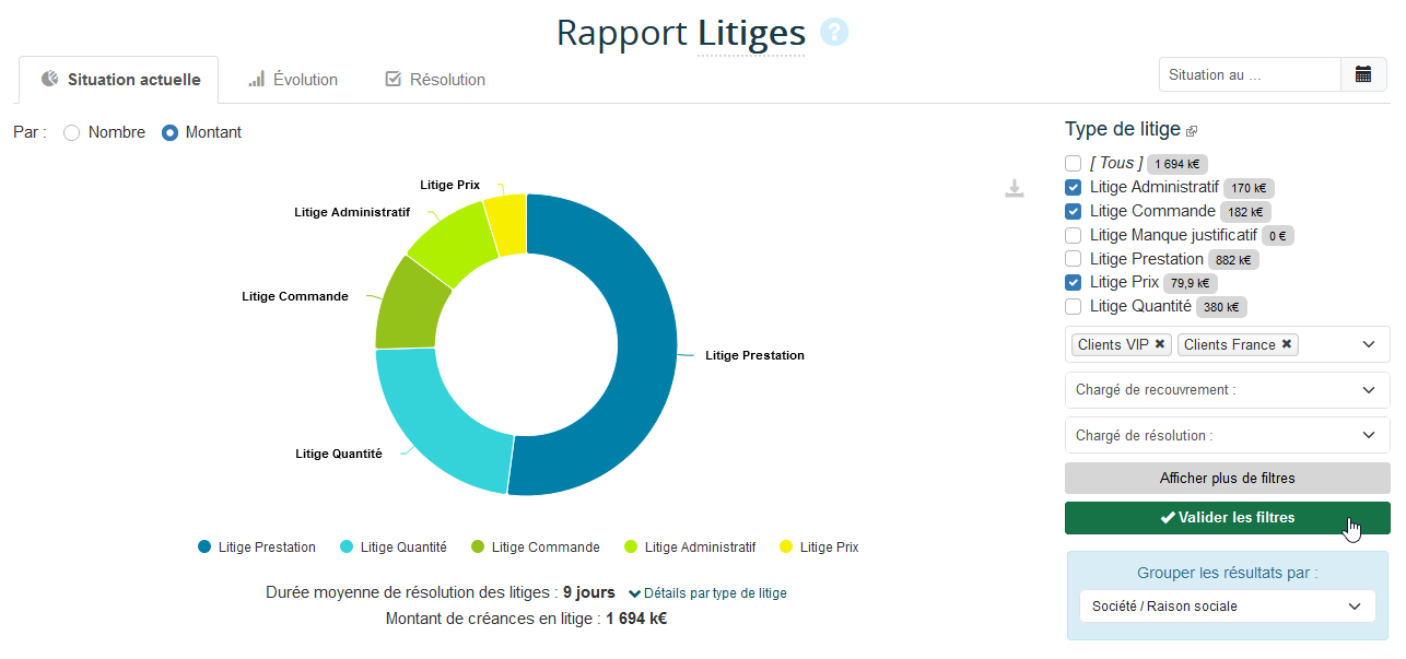Évolutions réalisées et à venir dans My DSO Manager ! Vendredi 10 Janvier 2025 par My DSO Manager Toute l'équipe My DSO Manager vous souhaite une très belle année ! 2025 est tout juste entamée et de nouvelles évolutions ont déjà été apportées à votre logiciel My DSO Manager. D'autres sont prévues dès les prochaines semaines et vont contribuer à améliorer encore l'expérience et l'efficacité utilisateur. Dernières évolutions mises en ligneCritères de recherche et de recherche avancée clients : il est désormais possible d'utiliser comme critères de recherches les montants échus correspondant aux tranches de votre balance âgée (qui sont bien sûr personnalisables) : Ces critères sont particulièrement utiles pour indiquer à l'IA Search & Assign les stratégies que vous souhaitez mettre en place. Par exemple, sélectionner les clients ayant un score faible, un mauvais profil payeur et des retards de paiement supérieur à 30 jours afin que My DSO Manager leur affecte automatiquement un scénario de relance adapté, un groupe correspondant aux clients risqués, un chargé de recouvrement spécialisé, des pénalités de retards de paiement, etc. IA Search & Assign : amélioration du design et de l'ergonomie de la page de paramétrage de cette fonctionnalité avancée, et ajout d'une option pour l'affectation des groupes et l'association des collègues aux clients, qui permet de désassocier automatiquement lorsque le client ne répond plus aux critères sélectionnés. Filtres des Rapports : ajout de cases à cocher permettant de sélectionner plusieurs valeurs de types de statut ou de statuts dans les rapports Litiges et Statut des pièces. Un bouton permet de sélectionner en une seule fois l'ensemble des critères souhaités, puis de valider ces critères afin de recharger le rapport. Nouvelles balises #hashtag disponibles, permettant d'enrichir vos e-mails, e-mails interactifs, courriers et SMS de relance : #client_blocked : compte client bloqué (Oui ou Non) #client_credit_limit : limite de crédit de l'acheteur #client_credit_limit_available : montant d'encours disponible (limite de crédit - encours total) #items_amount_overdueX : montant du retard au delà de X jours, X étant paramétrable de 1 à 365 (nous contacter pour définir cette valeur). Par exemple, #items_amount_overdue90_exclude_disputes affiche le montant du retard de plus de 90 jours hors pièces en litige. Le même principe s'applique sur les autres #hashtag de même type. Exemple : #items_amount_overdue90_disputes affiche le montant des pièces en litige et en retard de plus de 90 jours. Ajoutez _per_currency à la fin du #hashtag pour que les montants soient groupés par devise. Ajout d'une case à cocher lors de la qualification des pièces et la saisie d'un commentaire permettant de le rendre visible dans la page interactive de votre client (le portail client). Cette fonctionnalité permet de renforcer les interactions possibles avec vos contacts clients et de fluidifier la communication. Évolution de la relance interactive que vous avez pu découvrir fin 2024 et qui va permettre d'intégrer d'autres fonctionnalités à l'avenir. Interconnexion dynamique et dans les deux sens avec Maileva et AR24 pour un pilotage intégré des Lettres Recommandées avec Accusé Réception et des Lettres Recommandés Électroniques.Prochaines évolutions à venir en 2025 Dans les prochaines semaines et les prochains mois, My DSO Manager va continuer d'évoluer significativement sur de nombreux aspects : Lancement de notre IA générative, MAIA, permettant de répondre à vos questions, de proposer une synthèse et une qualification automatique des pièces sur la base des retours clients. Amélioration des connecteurs existants avec des services partenaires (information financière, assureurs crédit, recouvrement contentieux, etc.), qui sont de plus en plus bidirectionnels. Amélioration continue du design et de l'ergonomie de My DSO Manager, en prenant en compte les retours utilisateurs. Intégration des retours clients par e-mail directement dans votre plateforme. Etc. La liste des évolutions est longue et nous sommes toujours à votre écoute afin de faire évoluer votre logiciel de la meilleure manière possible. En synthèse, l'IA dans My DSO Manager :Smart upload : notre module d'import permet d'intégrer vos données quelque soit leur format, facilitant considérablement l'implémentation du logiciel.Search & Assign : qui permet la mise en œuvre intelligente de vos différentes stratégies.IA générative MAIA : Chatbot apportant une assistance experte sur le logiciel et les meilleures pratiques de credit management.Qualification automatique et intelligente des créances sur la base des réponses clients.MAIA est évolutive et apportera à l'avenir de nombreuses possibilités telles que la génération de rapports personnalisés.Pourquoi ces évolutions sont essentielles ?Les technologies numériques et l'interconnexion entre les systèmes évoluent très rapidement, transformant les méthodes et les pratiques du recouvrement de créances et du credit management. Elles permettent d'accroître la performance et l'efficacité de manière exponentielle et d'améliorer significativement le processus Order to Cash (O2C). Notre objectif est que vous bénéficiez toujours du meilleur logiciel afin de mettre en œuvre votre expertise de la manière la plus pertinente. Retrouvez nos derniers tutorielsQuelle stratégie de démarrage avec Search & Assign ? Comment gérer votre assurance crédit dans My DSO Manager ?