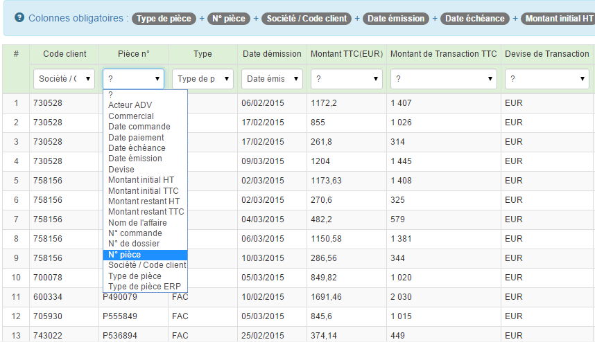 (par exemple les factures émises mais non encore payées et soldées). Si une facture est envoyée un jour 'J' mais qu'elle n'est plus présente dans le fichier lors de l'import réalisé à J+xx,