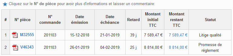 , rendant visibles les commentaires internes renseignés sur vos pièces !