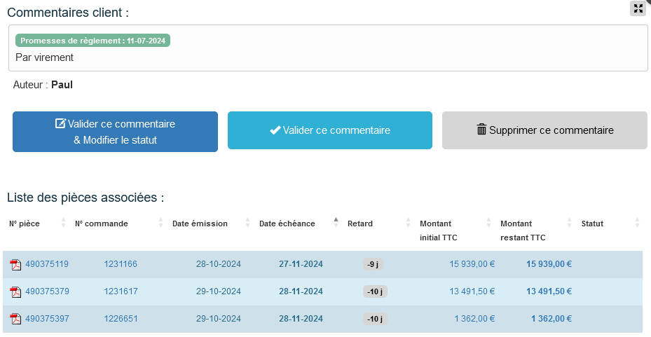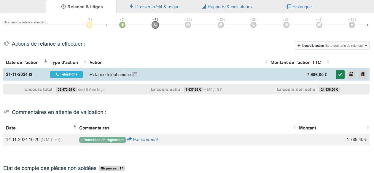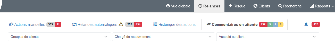Consultez régulièrement l'onglet des commentaires en attente pour une qualification et un traitement optimal de votre recouvrement.