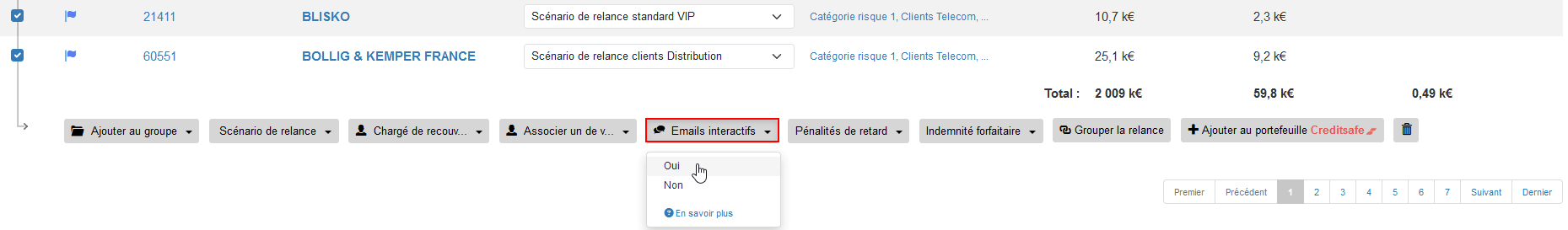 z vos critères de recherche, cochez les clients et activez la relance interactive :