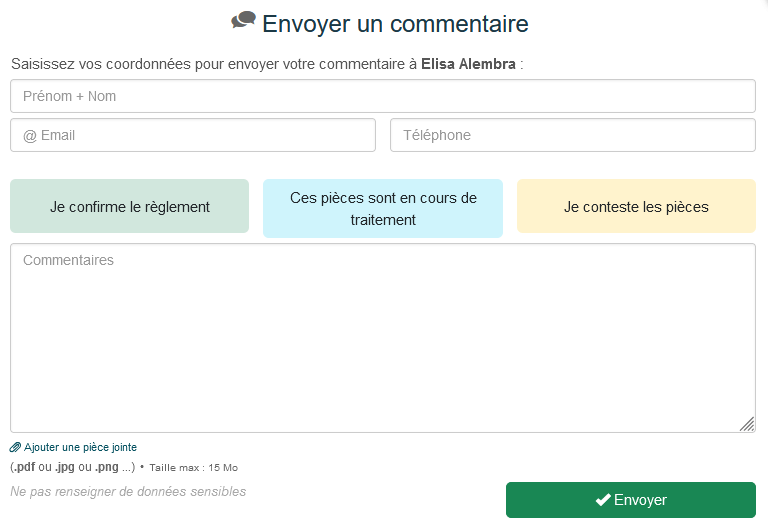 , une promesse de règlement ou signaler un problème et partager des documents. Ces commentaires sont envoyés au