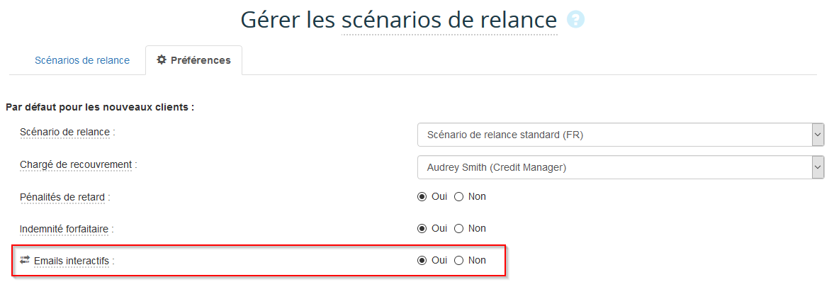 , pour activer la relance interactive par défaut ou selon vos propres critères.