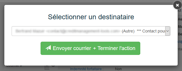 Une fenêtre pop-up s'ouvre en vous proposant de sélectionner un destinataire dans la liste déroulante :