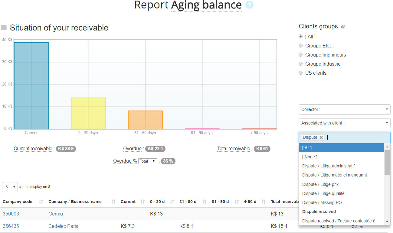 This feature is particularly relevant to highligh the weight of disputes or other type of receivable in overdue.