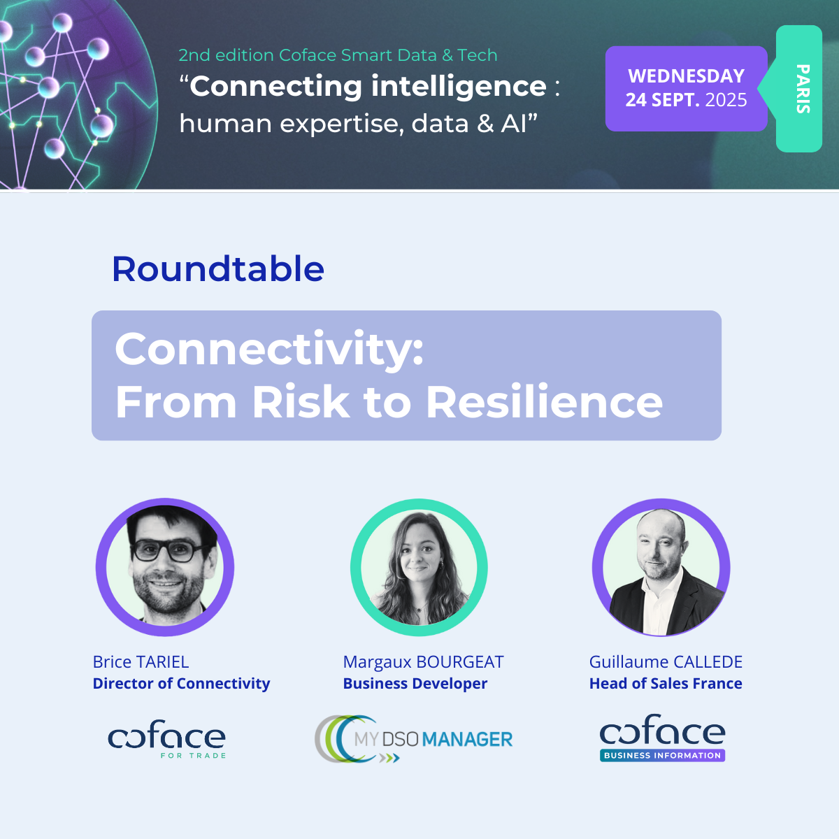 In the Coface "Smart Data & Technologie" roundtable, we will explore alongside Coface experts - how connected risk data enables more resilient and responsive credit management strategies.