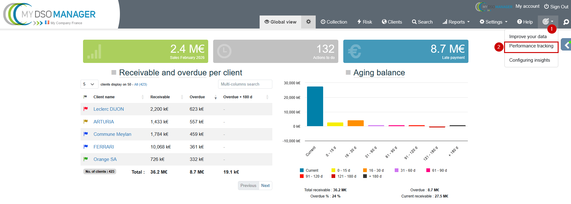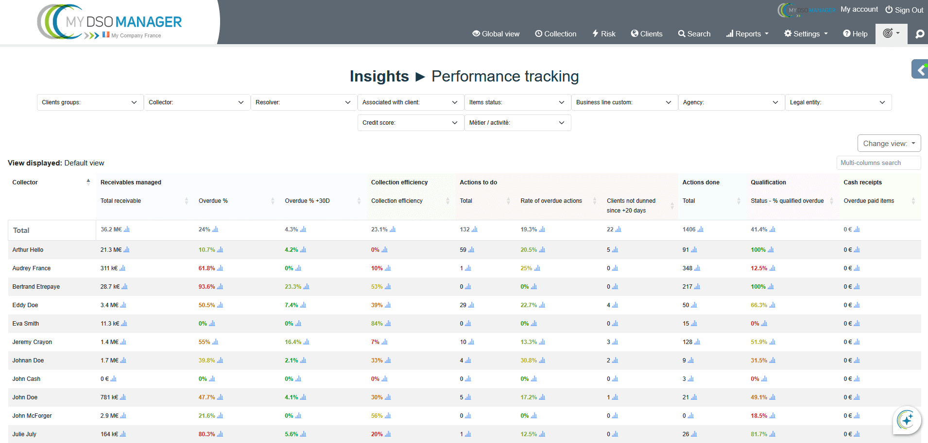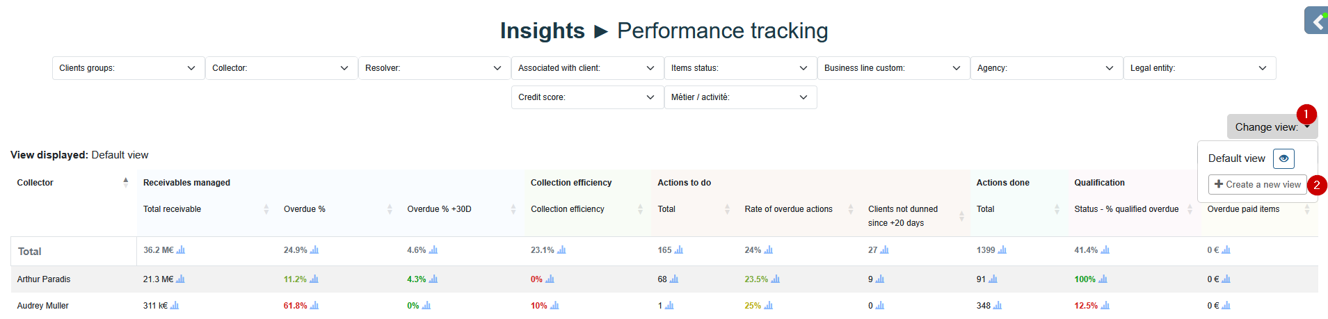 report displays 10 key indicators, selected to provide a synthetic view of collections performance.