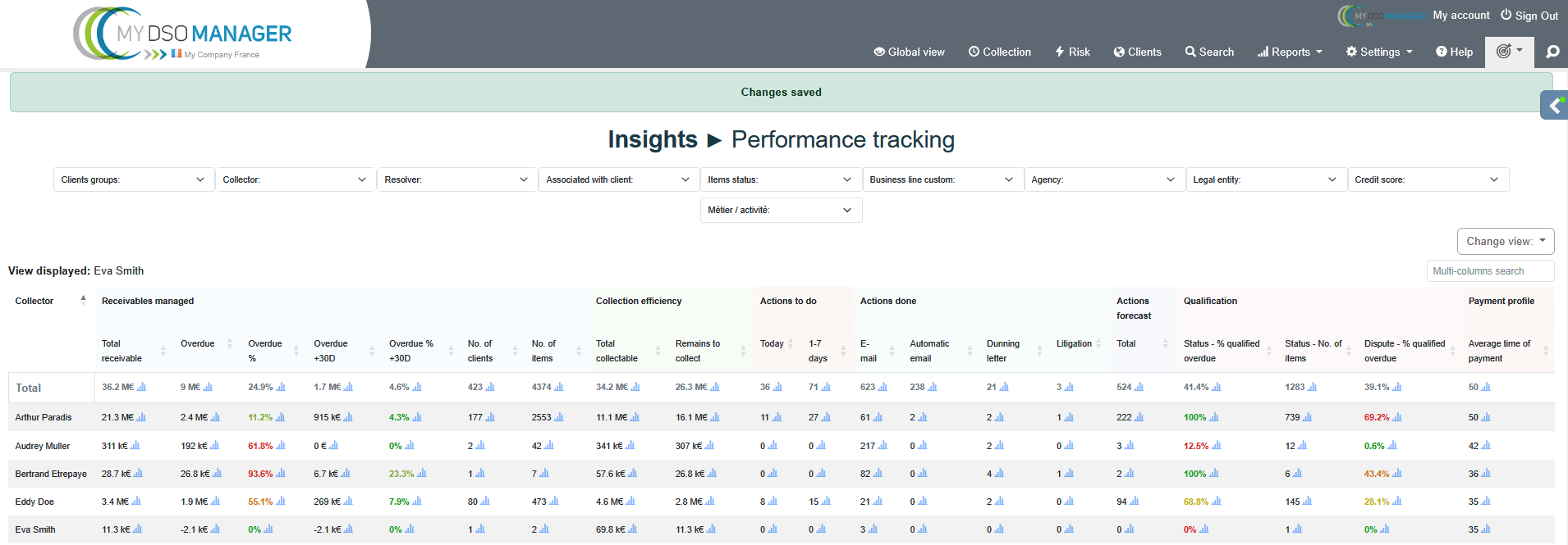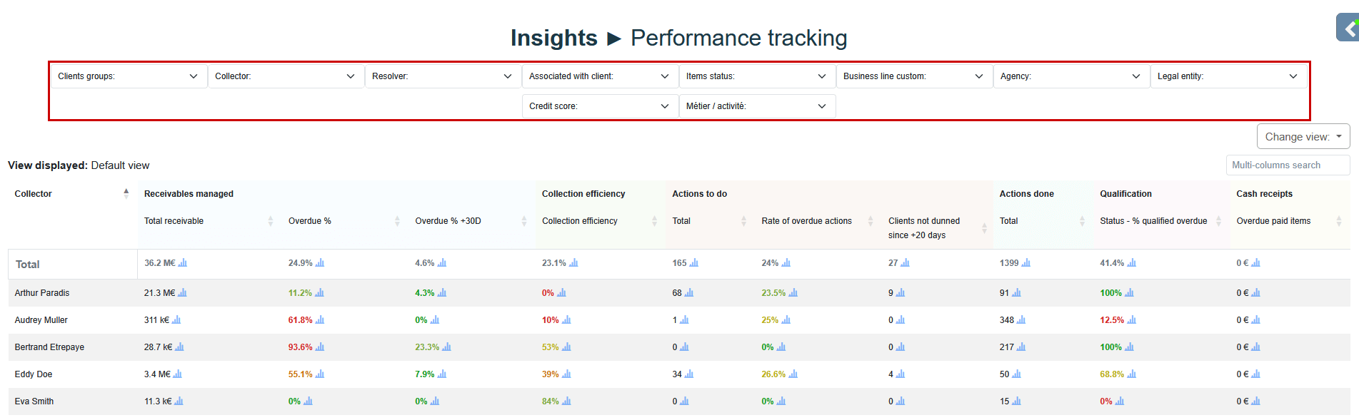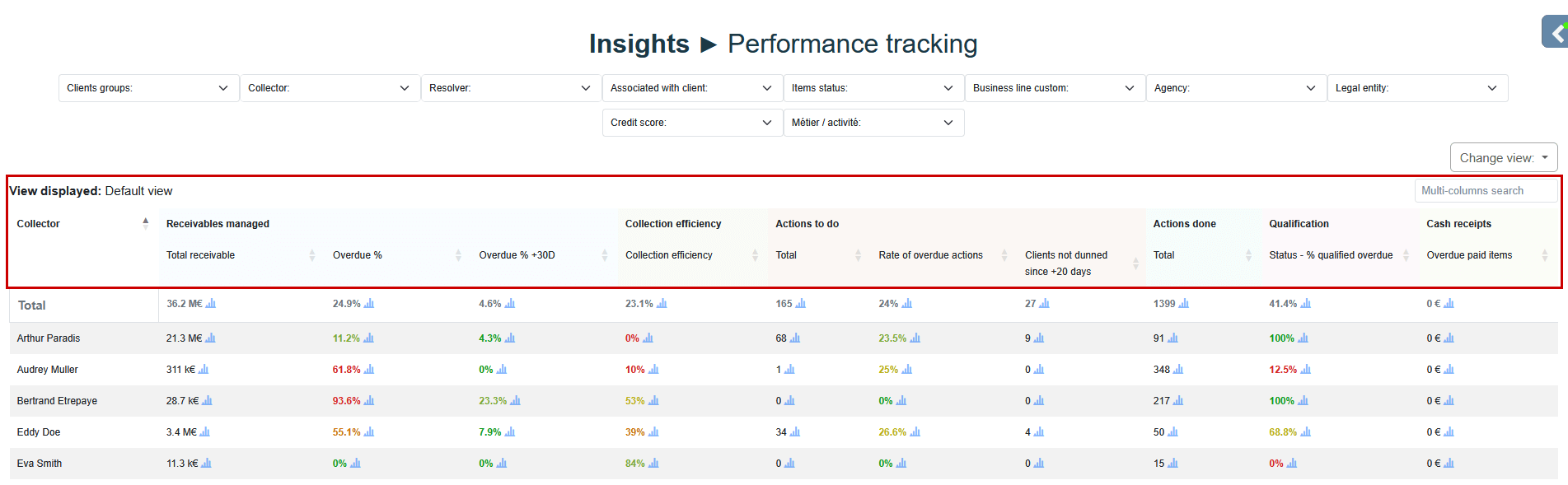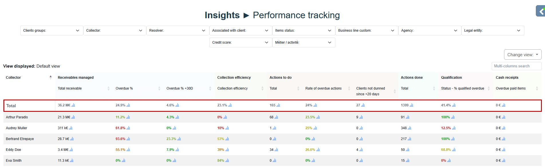 report provides a consolidated view of key collections indicators, facilitating analysis, comparison, and activity monitoring.