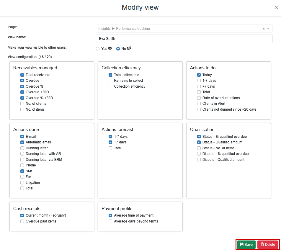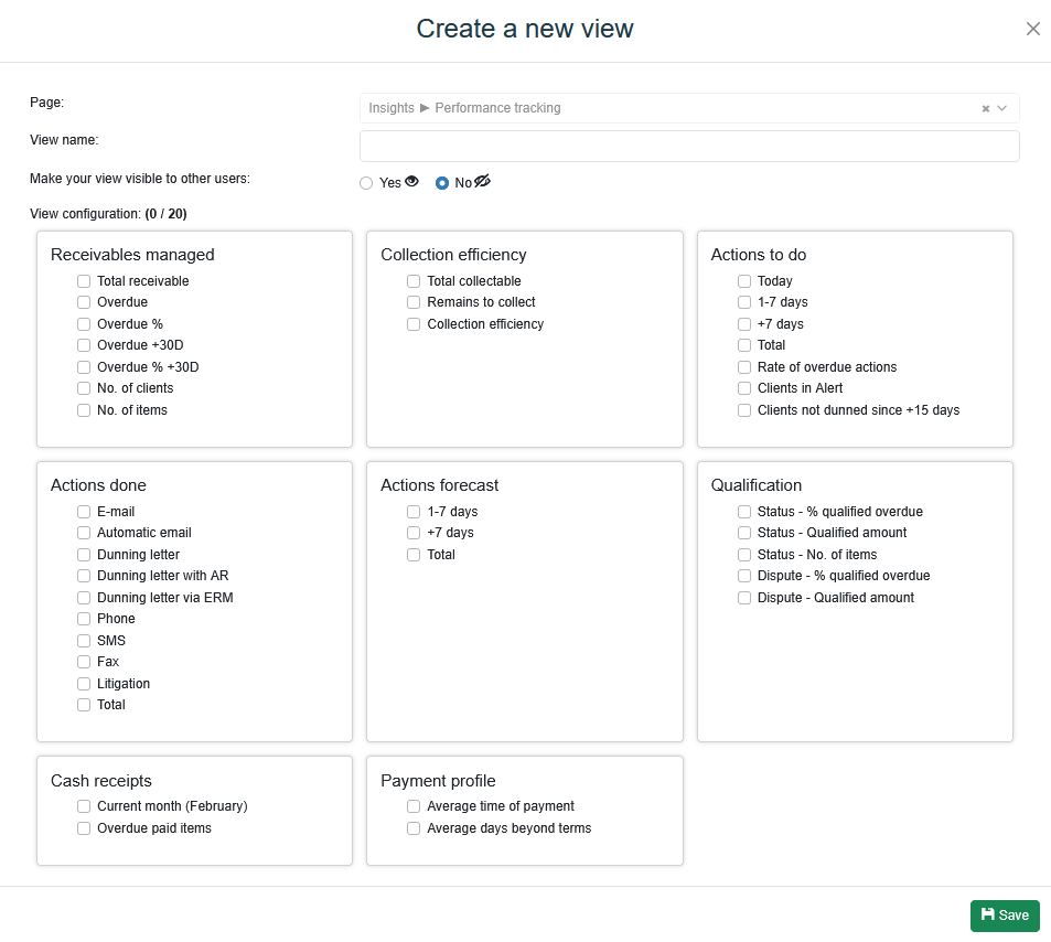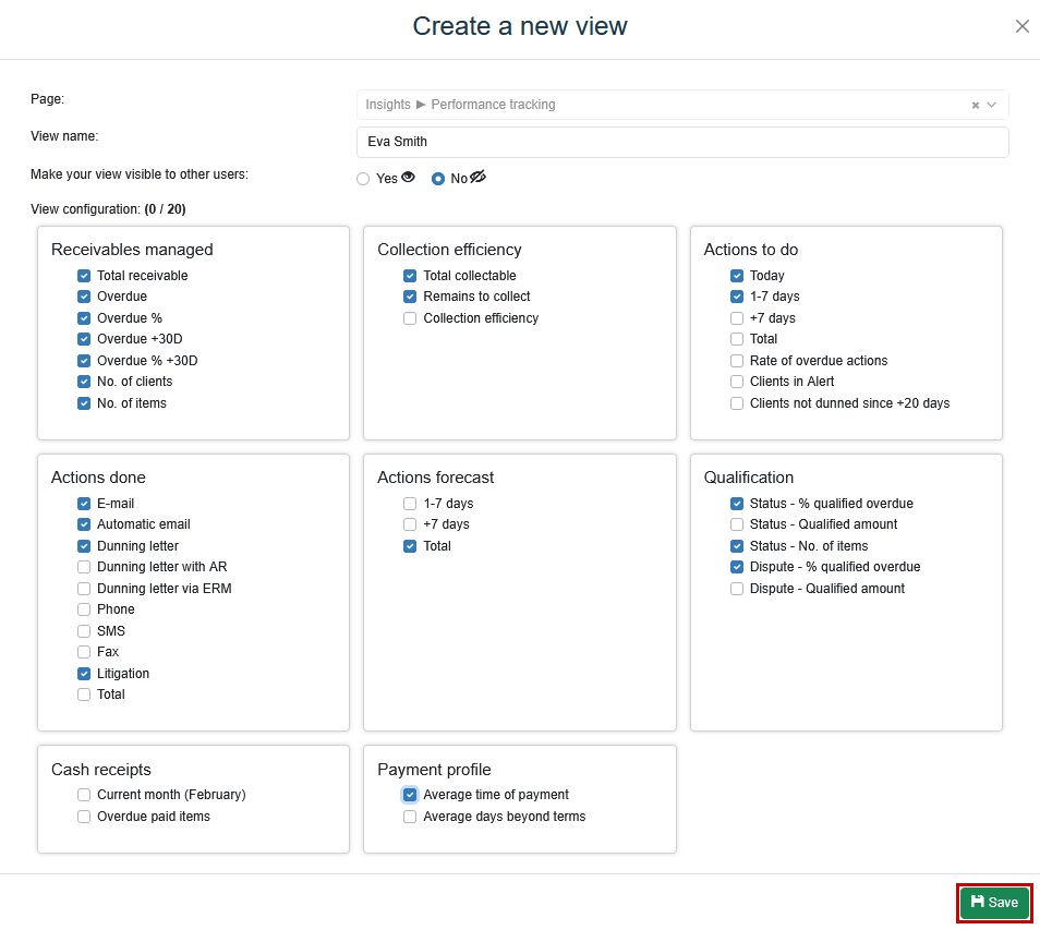 Enter the view name, then choose its visibility: visible to other users or only within your account.