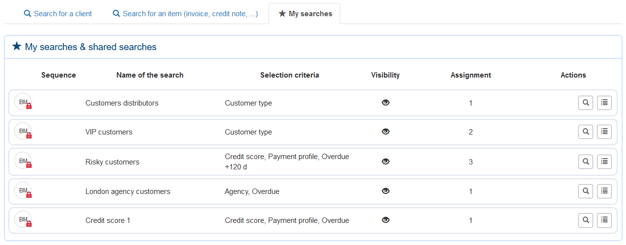 → Once you have completed your search criteria, move from one tab to another (Search for a client / Search for an item) to get either a list of customers or a list of items while keeping the criteria choosen.
